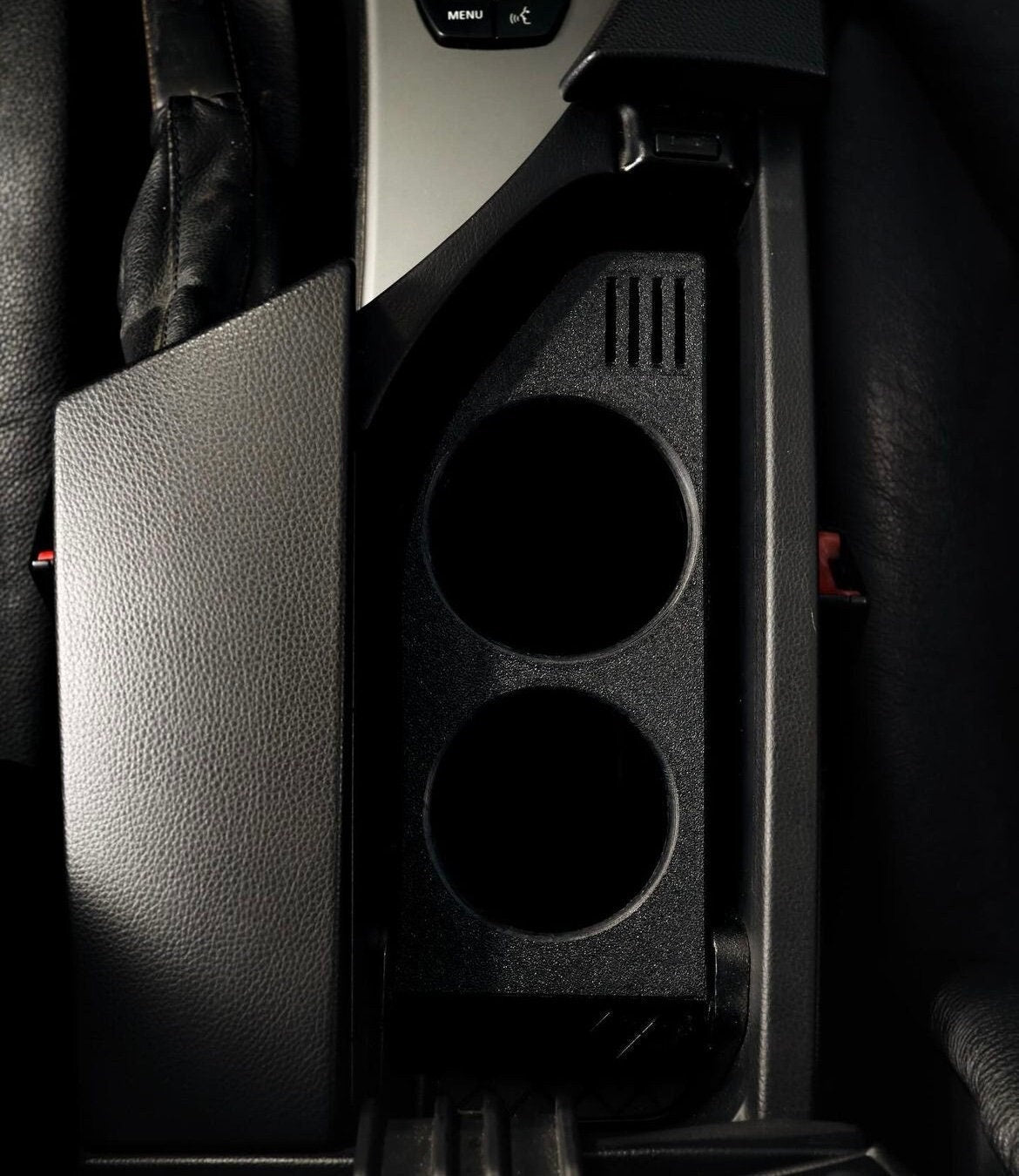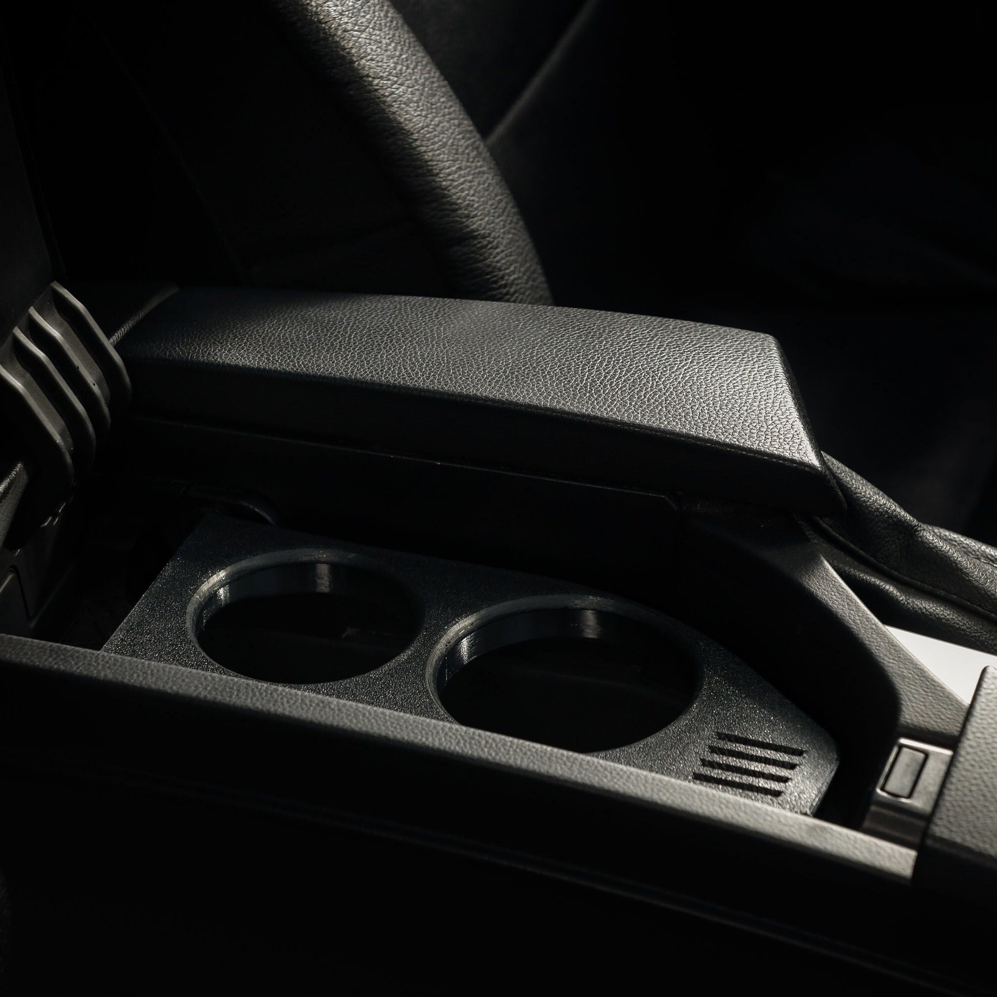 Upgrade your BMW 5 Series (E60/E61) interior with this custom 3D-printed cup holder, designed to replace the factory phone cradle inside the armrest.